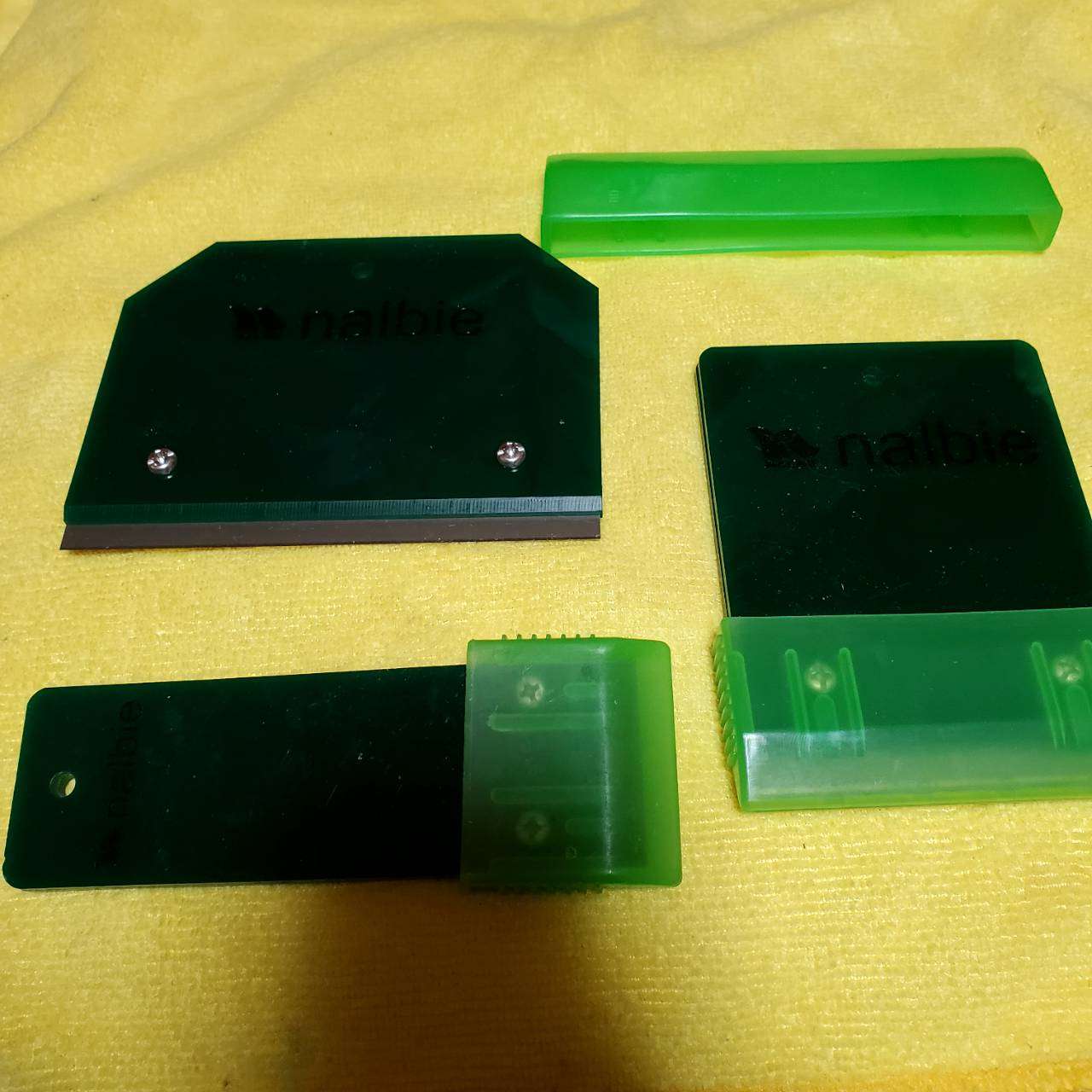 鉄製のスクイジーは自分には合わず・・100均のスクイージでお風呂場の壁や窓ガラスを切る練習をしていたせいか、筋肉痛になるので・・笑